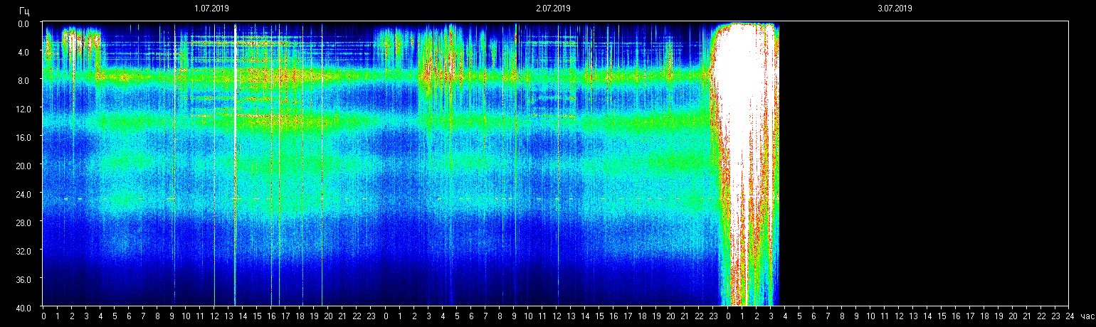 Under de senaste två dygnen har energierna som påverkar Schumann resonansen varit ungefär som den tidigare inlägget den 27/6 dvs med ett relativt brett utslag över olika frekvensbanden där vi fortsatt ser genomslag av lite kraftigare utslag som vita smala vertikala streck som täcker hela tidsperioden. Det som sticker ut är givetvis det kraftigare fält av mycket stark påverkan vi nu haft under de senaste dryga tre timmarna! Det syns som ett bredare vitt fält till höger i grafen.