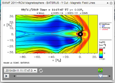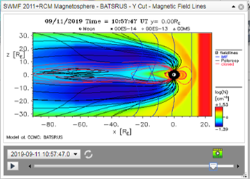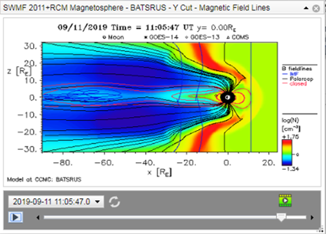 Jag hade hoppats lyckats lägga in en videosnutt som täcker hur vår magnetosfär påverkats av sol och annan kosmisk påverkan under det senaste dygnet. Nedan bilder får illustrera istället. Det jag ser liknar i alla fall det vi sett tidigare med ett par kraftigare vågor det senaste dygnet som tryckt till vår magnetsfär och fått magnetfältslinjer att fladdra som vimplar på jordens skuggsida. Sedan följer peroder med lägre intensitet igen. På nedan bilder ser ni en energivåg som ett vertikalt rött band som driver in från höger (solsidan) och hur det drar igenom hela magnetfältet och påverkar magnetosfären att kraftigt fladdra till, i sekvens genom dessa tre bilder.