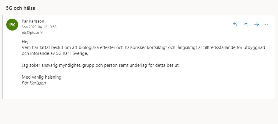 På PTS och Stålskyddsmyndighetens hemsidor lämnas väldigt mycket obesvarat kring hälsa och säkerhet och det står att mer studier krävs, samtidigt väljer man att köra igång utrullningen av 5G under 2020. Jag förväntar att jag kommer skickas mellan olika myndigheter och skulle inte bli förvånad att hänvisas till studier från WHO och EU, men vi får se.